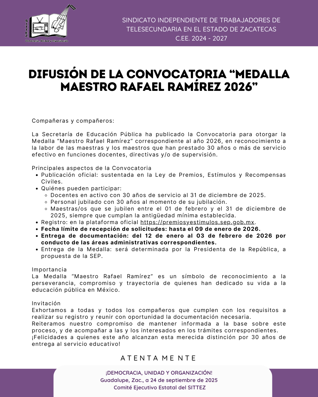 La Medalla “Maestro Rafael Ramírez” es un símbolo de reconocimiento a la perseverancia, compromiso y trayectoria de quienes han dedicado su vida a la educación pública en México.